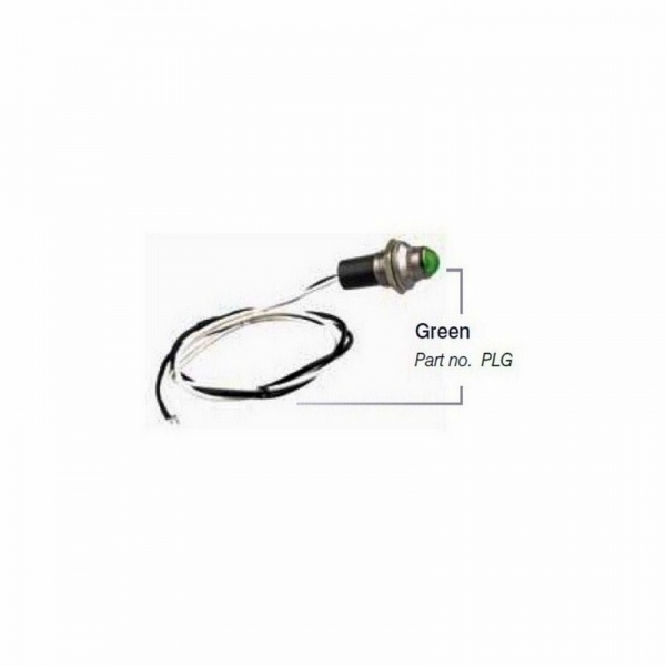 24V green pilot lamp for dash mount or other indication applications. LED stainless steel body & housing and 40cm hardwired cable