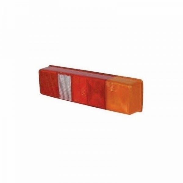 Commercial rear lamp lens, universal. Stop/single tail/ direction indicator/fog/reflex reflector. Replaces Ford/Leyland. l 365 x w 58 x h 95mm. ECE approved.