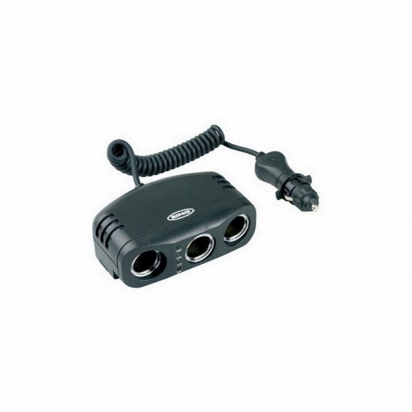 8amp 12v DC triple MultiSocket with battery analyser, width adjusting fitment collar, 3 guide light rings, mounting arms and coiled cable.
