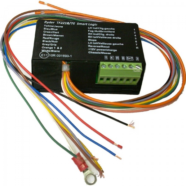 Smart 7-way bypass module. Controls trailer road lights putting no loads on the car's light circuits. Has a built-in buzzer to monitor the trailer flashers. Compatible with most cars.