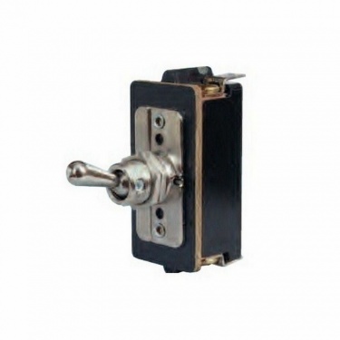 On/off, double pole heavy duty switch with nickel plated brass lever and 6.3mm blade terminals. 13mm panel hole. 20 amps at 12 volt dc rating.