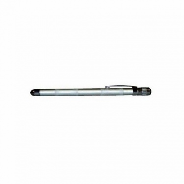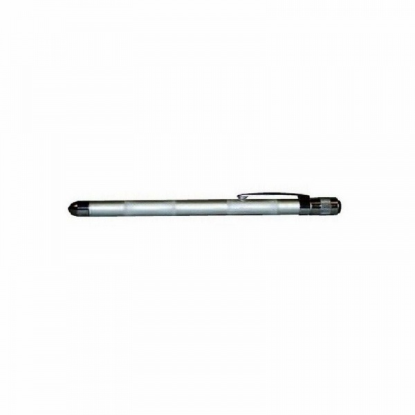 Slim anodised aluminium body with screw on/off and push button momentary on switch and pocket clip. Complete with 3 x AAAA batteries