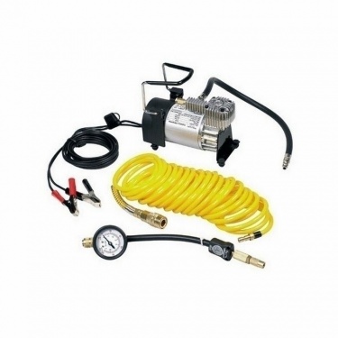 Carry handle, rubber mounted feet, waterproof on/off switch, quick release 12v battery clips, 7m air line hose with industrial style brass nozzle, inline inflator/deflator, quick release connector, large gradient pressure gauge, durable storage bag.